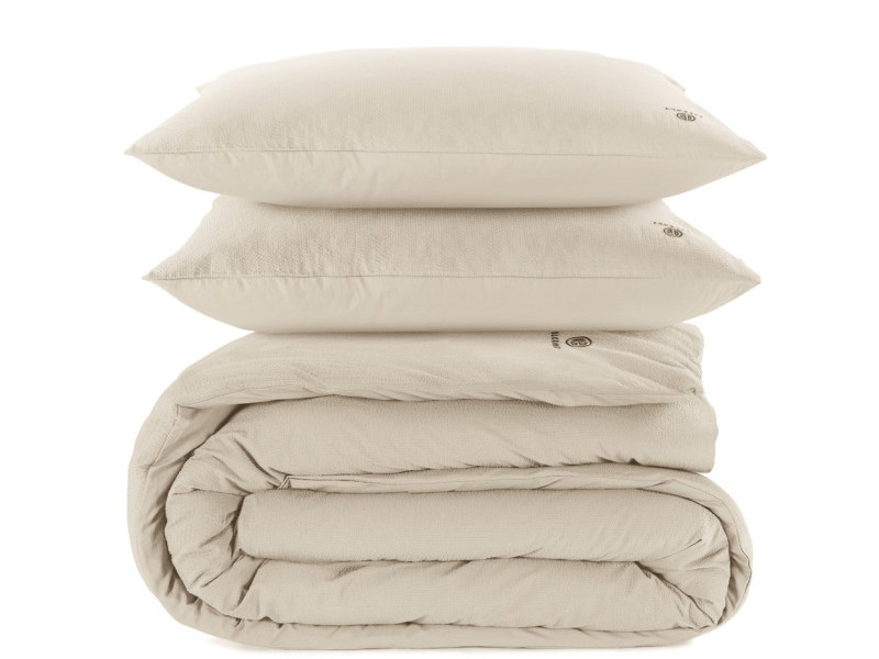 De bovenkant is uitgevoerd in een seersucker katoen. Dat is een geribbelde katoen die zorgt voor een casual chique uitstraling. De onderkant van percale katoen is heerlijk zacht. De neutrale beige kleur pas in vrijwel iedere slaapkamer.