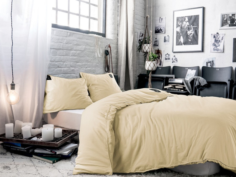 Een timeless basic gemaakt van deels gerecyclede katoen en deels nieuwe katoen. De afwerking met een dubbele jeansstitch geeft dit dekbedovertrek een stoerdere look. De zachte gele kleur past in vrijwel ieder interieur.
