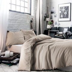 Een timeless basic gemaakt van deels gerecyclede katoen en deels nieuwe katoen. De afwerking met een dubbele jeansstitch geeft dit dekbedovertrek een stoerdere look. De chique beige kleur past in vrijwel ieder interieur.