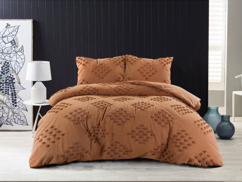 Ervaar het luxueuze comfort van dit tufted katoenen dekbedovertrek. De zachte textuur en de elegante eenvoud van dit beddengoed creëren een serene en stijlvolle slaapomgeving.