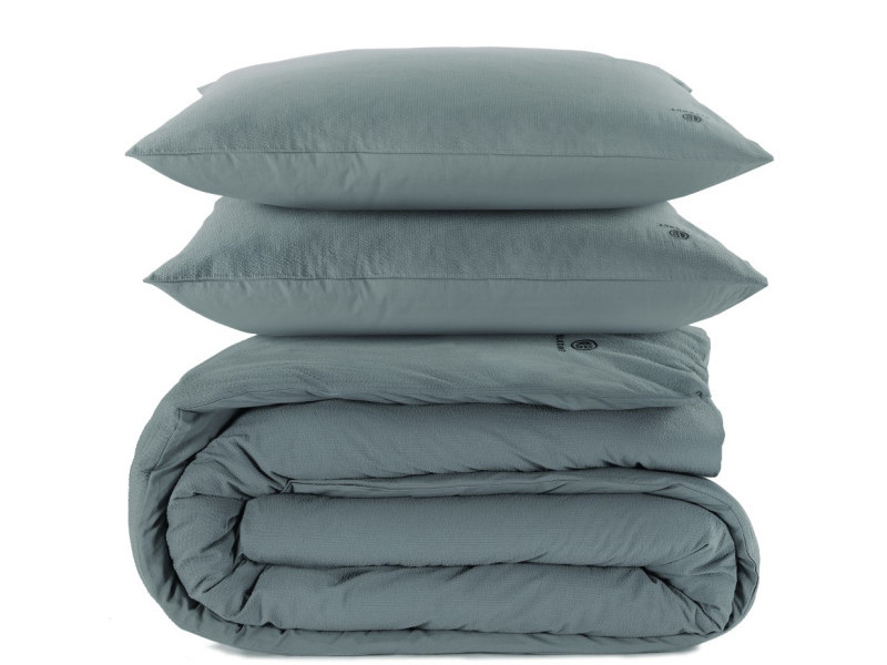 De bovenkant is uitgevoerd in een seersucker katoen. Dat is een geribbelde katoen die zorgt voor een casual chique uitstraling. De onderkant van percale katoen is heerlijk zacht. De groene kleur is perfect te combineren in de meeste interieurs.