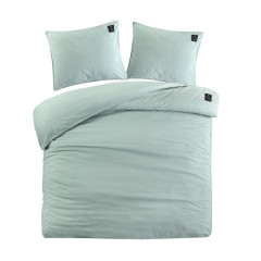 Een timeless basic gemaakt van deels gerecyclede katoen en deels nieuwe katoen. De afwerking met een dubbele jeansstitch geeft dit dekbedovertrek een stoerdere look. De trendy groene kleur maakt van dit dekbedovertrek een echte eye-catcher.