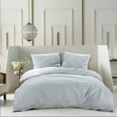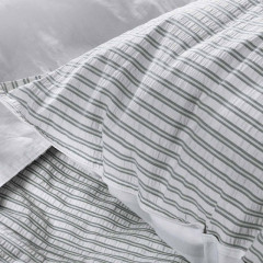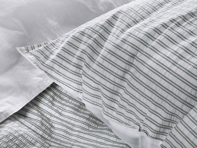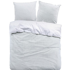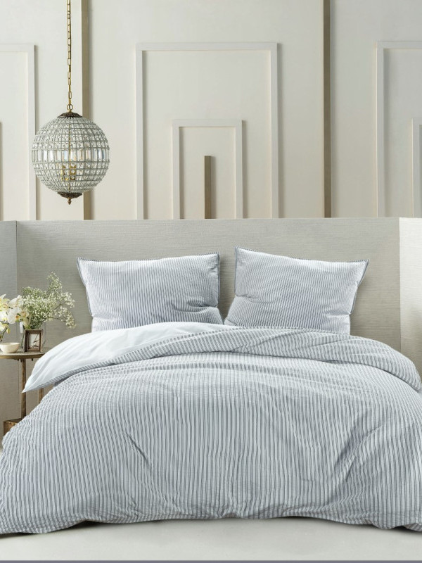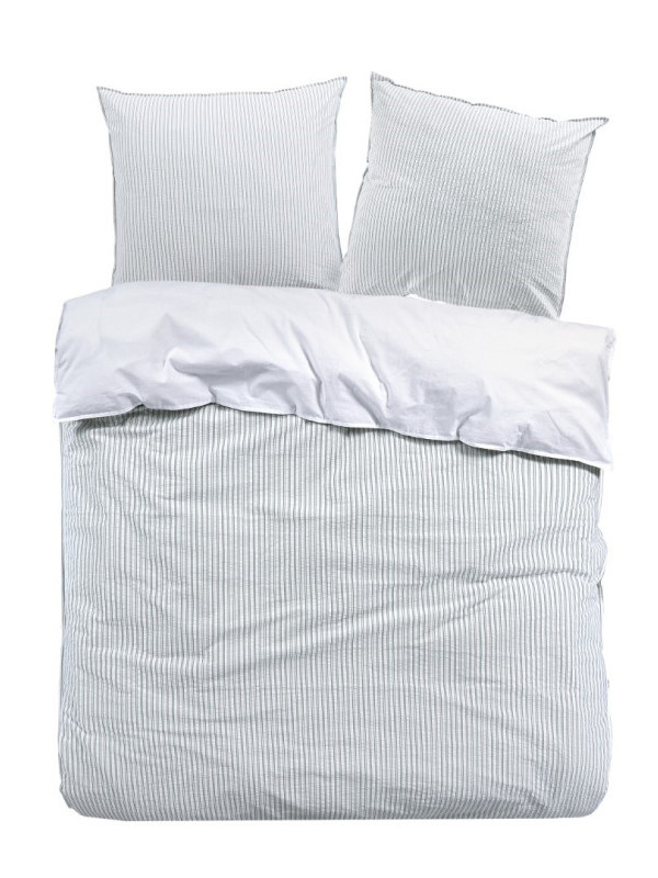 Tijdloos, stijlvol en een echte eye-cather zijn drie beste omschrijvingen voor dit overtrek. De bovenkant is gemaakt van seersucker katoen met een elegant design van dunne strepen. Seersucker is een speciale katoen die er wat geribbeld uitziet en een luxe uitstraling heeft. De onderkant is gemaakt van een effen gladde percale katoen. Combineer dit overtrek met een van de hoeslakens uit de Papillon collectie om zo het plaatje helemaal compleet te maken.