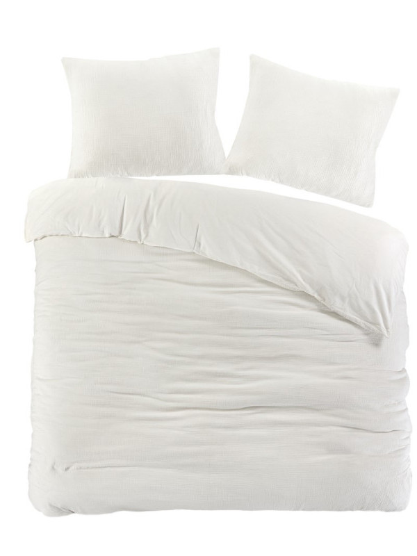 Slapen in stijl onder dit heerlijke dekbedovertrek. De voorzijde is gemaakt van extreem zachte mousseline katoen met een subtiel wafelpatroon en de achterzijde is van de fijnstgeweven perkal katoen.