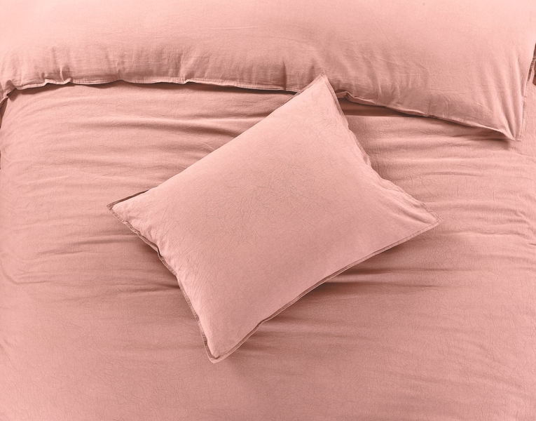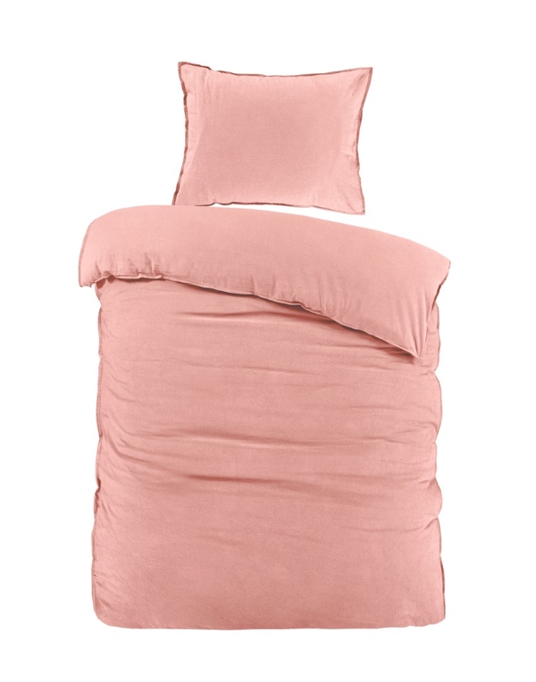 Een zacht roze dekbed met een bijpassende kussen, ideaal voor comfort en stijl.