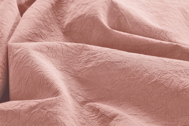 Close-up van een roze laken met een lichtroze stof, die een zachte en delicate uitstraling heeft.
