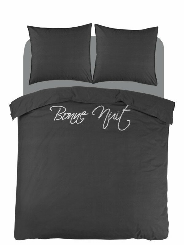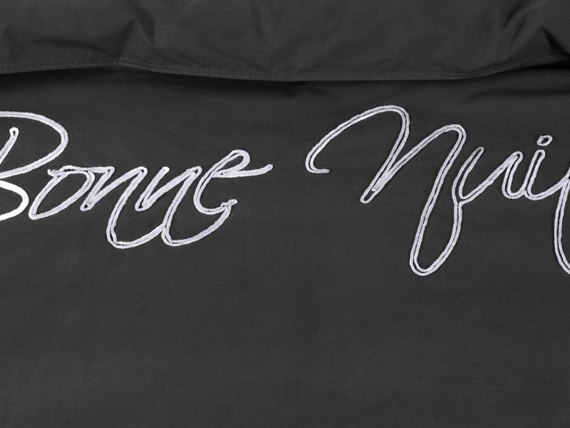 Creëer een oase van rust in je slaapkamer met het prachtige Papillon Napier dekbedovertrek in een verfijnd antracietgrijs. Dit luxueuze overtrek, gemaakt van 100% percale katoen, voelt zijdezacht aan en zorgt voor een ademende, comfortabele nachtrust. Het subtiele geborduurde tekstje "Bonne Nuit" in het midden van het dekbedovertrek voegt een vleugje Franse charme toe, perfect voor een romantische en serene sfeer in je slaapkamer.