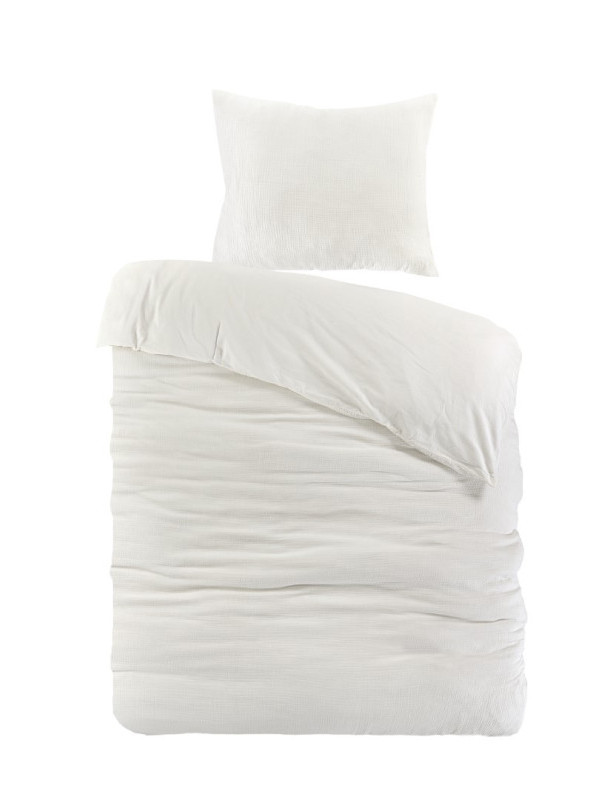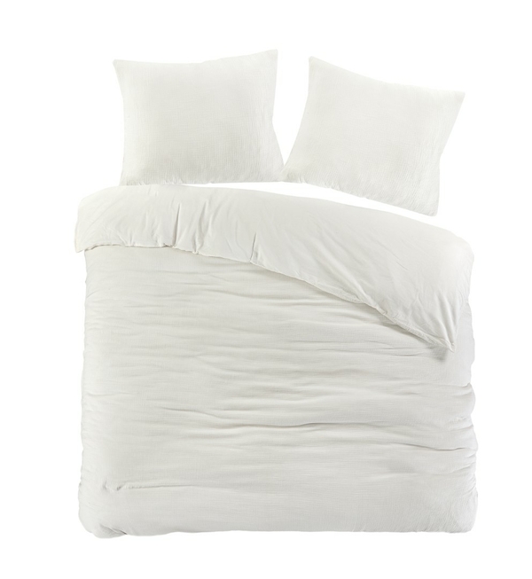 Slapen in stijl onder dit heerlijke dekbedovertrek. De voorzijde is gemaakt van extreem zachte mousseline katoen met een subtiel wafelpatroon en de achterzijde is van de fijnstgeweven perkal katoen.